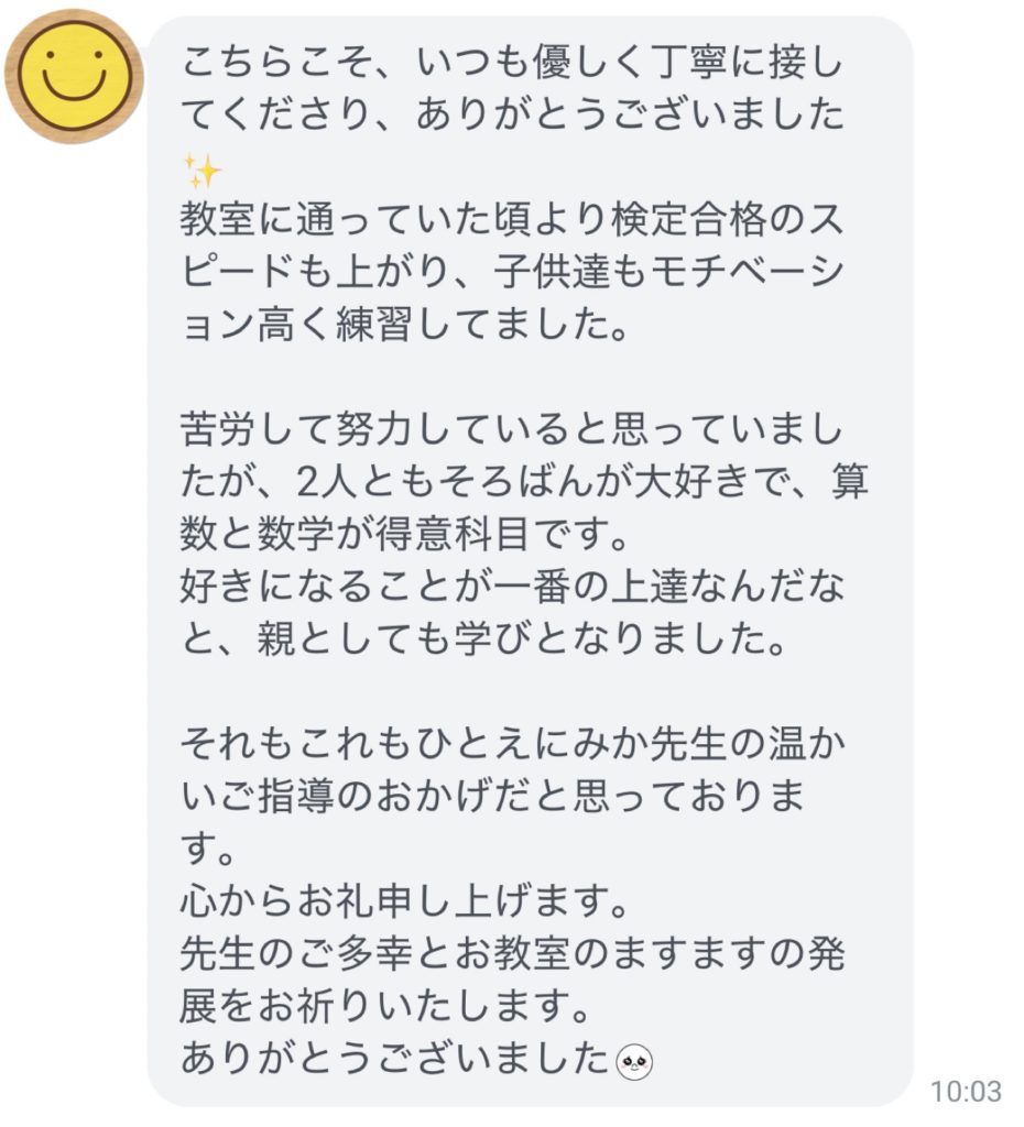 オンラインレッスンを始めた頃に探してくださりご入会いただいた生徒様ですので私としても思い入れが強く、ここまできてくれたことをとても嬉しく思っております。