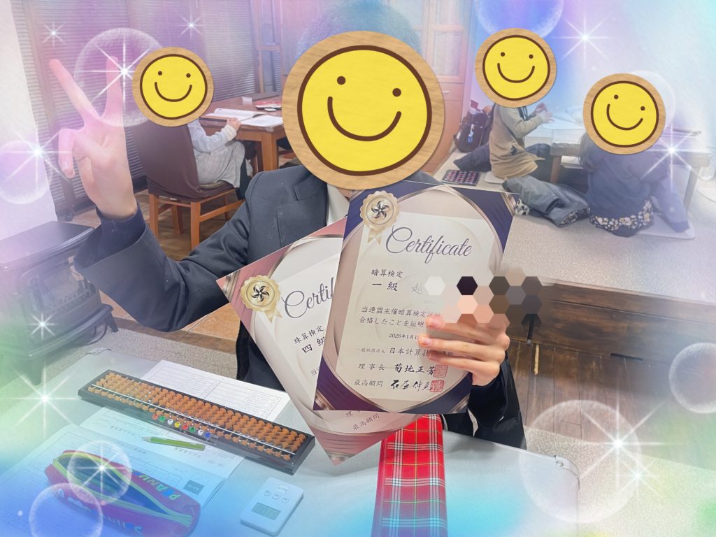 1級暗算合格おめでとう!羨望の眼差しが(^^) あおばそろばん 川西能勢口アステ 川西池田 雲雀丘花屋敷 川西市 宝塚市  通塾 オンライン zoom   teams   珠算 そろばん 暗算 フラッシュ  塾 個別指導 池田市 豊中市 大阪市 西宮市 から 世界中へ