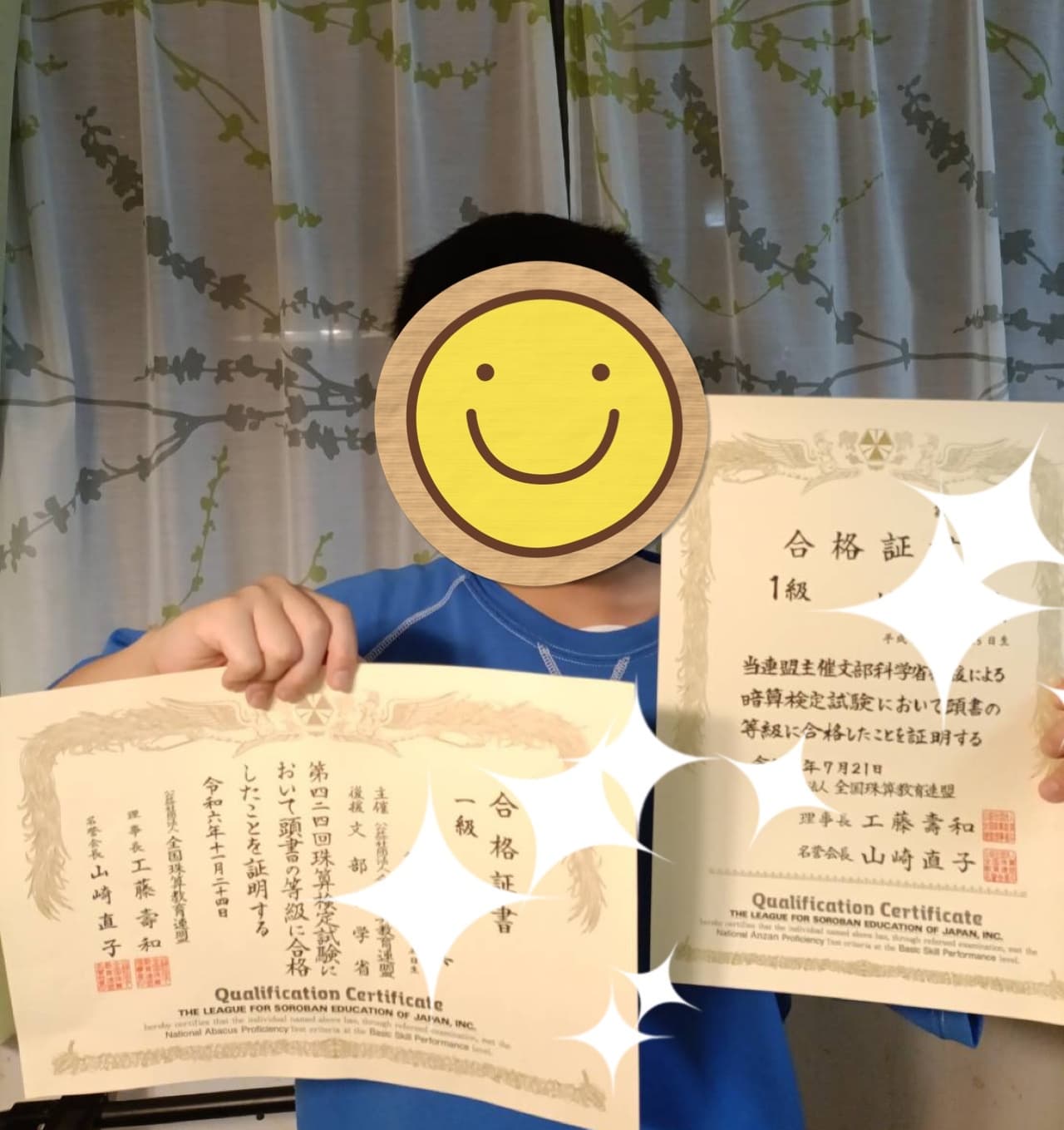 アメリカ在住。帰国時の年に一度の検定のチャンスをものにされ、日珠連暗算初段珠算1級見事合格しました。(㉒のご友人です。)