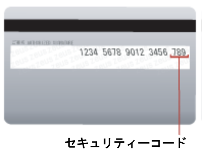 VISAおよび Mastercardでのクレジットカード・セキュリティコードはクレジットカード裏面の署名欄に記載されているクレジットカード番号の後に記載された3桁の番号となっております。